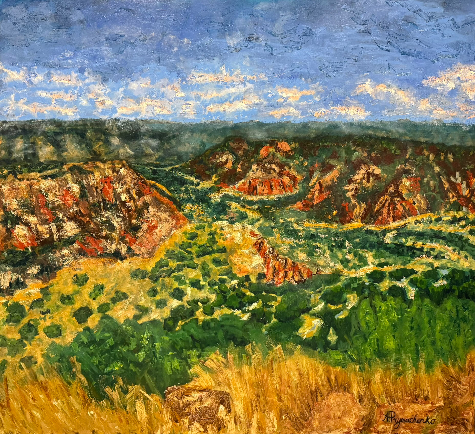 ‘scarlet peaks of Palo Duro’, 80x72 inches
